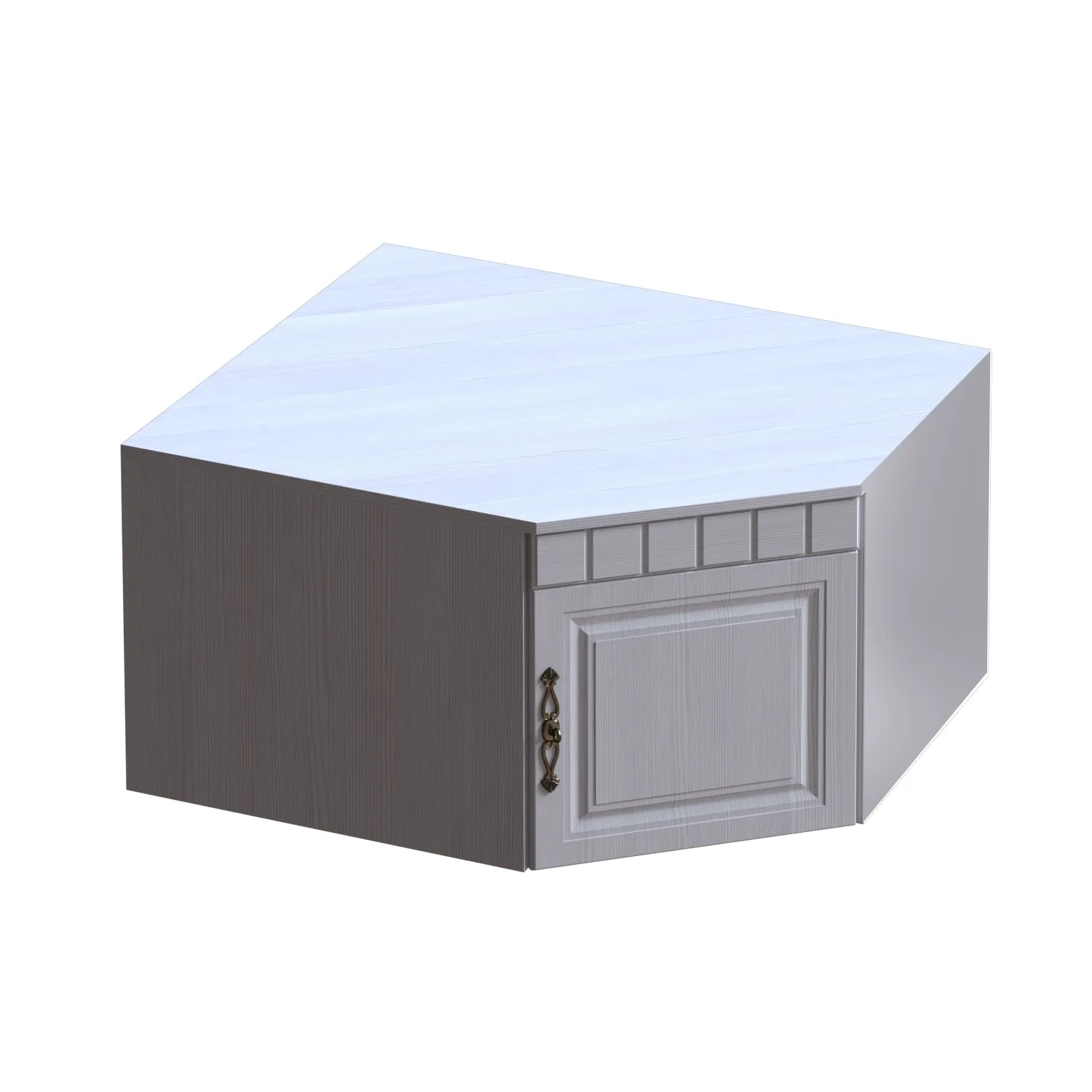 Антресоль угловая - глубина 910 мм, ширина 910 мм, высота 480 мм. За распашной дверью расположена ниша для вещей. Дверь монтируется на любую сторону антресоли. Антресоль ставится на угловой шкаф и крепится к нему межсекционными стяжками.