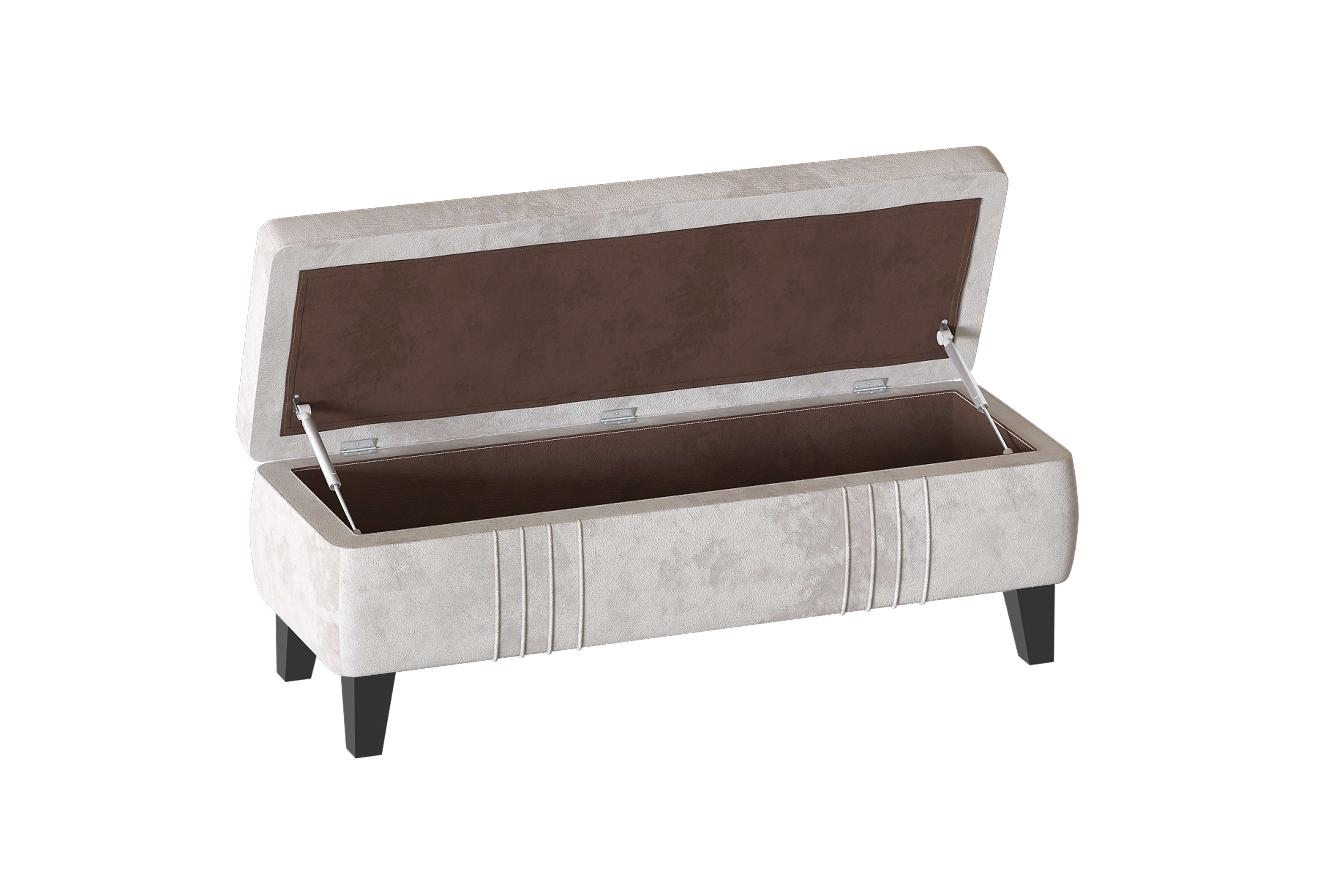 Декоративная отстрочка по высококачественному велюру добавляет приятный объем и украшает изделие. Опоры выполнены из массива берёзы, покрыты прозрачным лаком и имеют защитные войлочные наклейки. Банкетка хороша не только в спальне, но и в гостиной, на кухне и в детской комнате. Максимальная нагрузка 110 кг.
