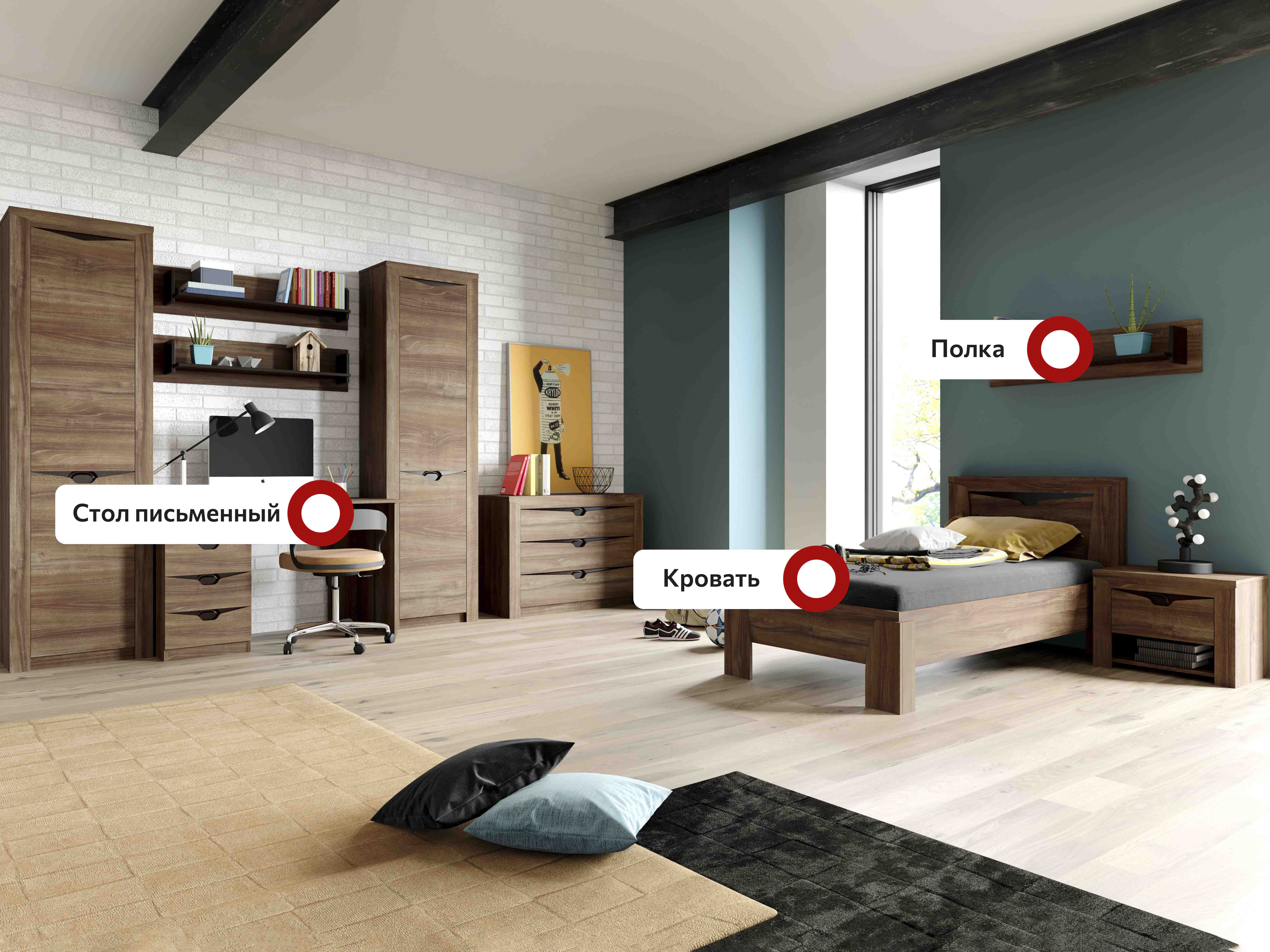 Гарнитур для молодёжной комнаты "Соренто" композиция #1