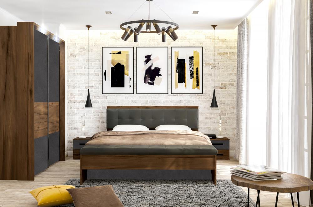 Коллекция Глазго - яркий пример брутальной спальни, которая отлично впишется в классический или современный стиль, а также удачно дополнит ваш интерьер в стиле лофт. Теплую древесную текстуру цвета "Таксония" контрастно подчеркивает строгий графитовый оттенок "Металл Бруклин".
