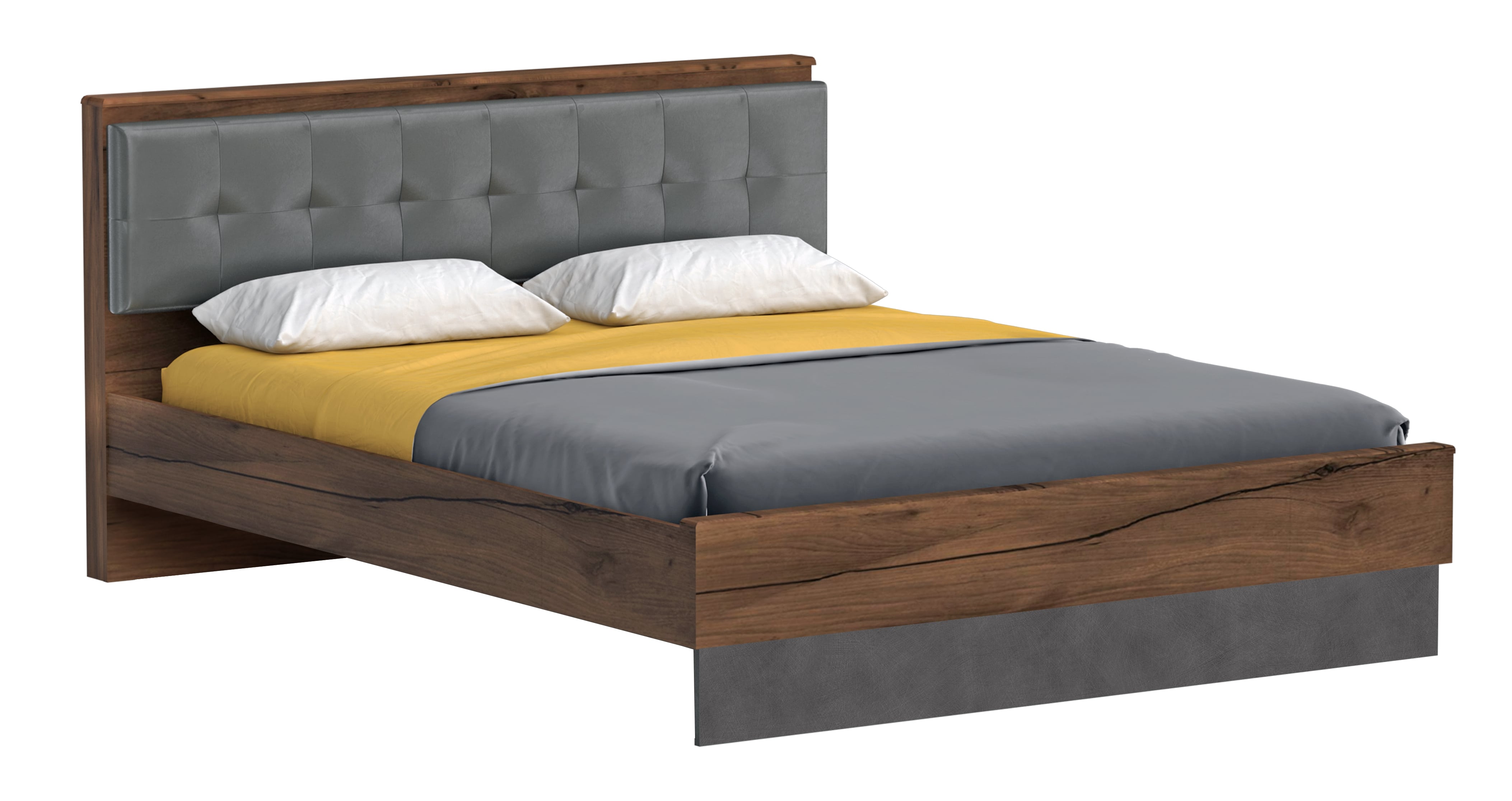 Кровать Глазго отличается повышенной комфортностью: изголовье обито мягкой экокожей в цвете "Пегас Грей" (серый), приятной на ощупь и устойчивой к истиранию.