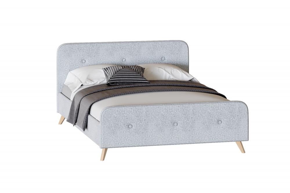 Изголовье имеет закругленный силуэт, обтянут велюровой тканью с пуговицами, что обеспечивает дополнительную мягкость и уют. Высокие стильные ножки из массива березы создадут ощущение легкости и воздушности.
