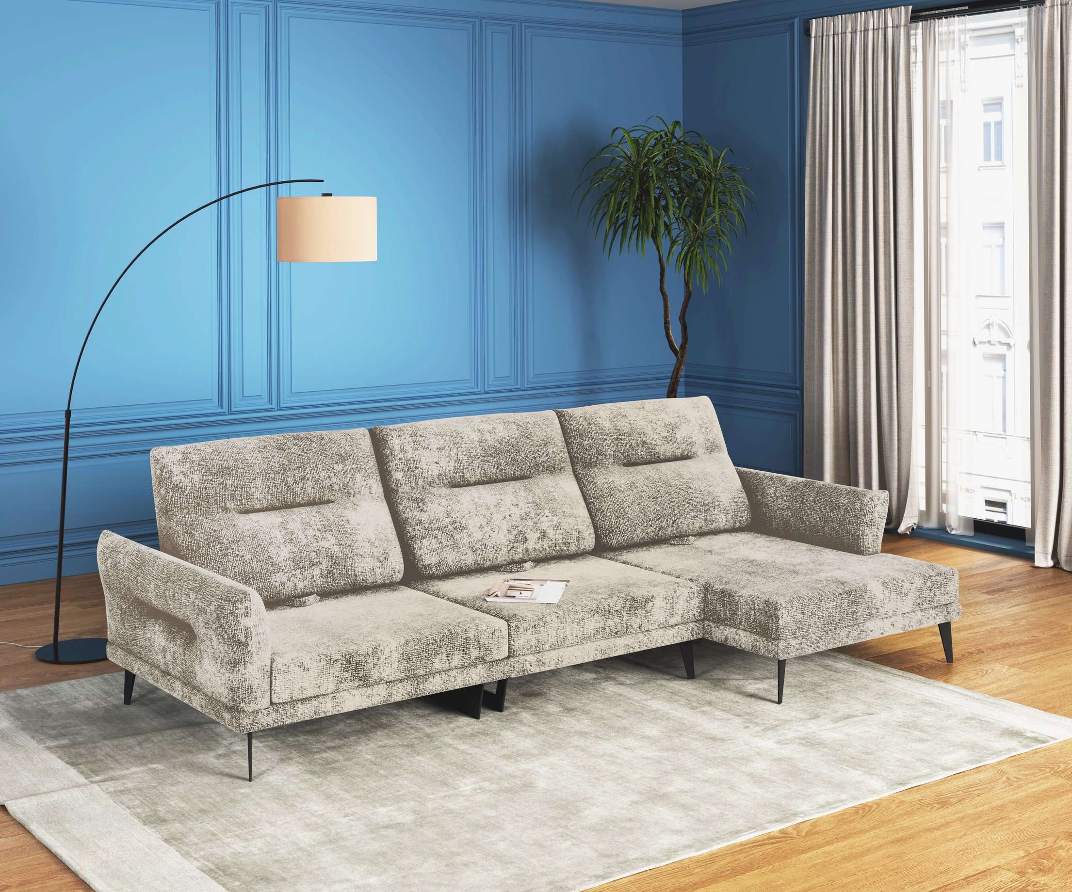 Модульный диван – это отличный вариант для тех, кому сложно подобрать монолитную конструкцию из-за сложной конфигурации помещения, а также тех, кто любит экспериментировать и часто делает перестановку. С его помощью можно легко изменить интерьер, превратив часть конструкции в пуф, кресло или софу.