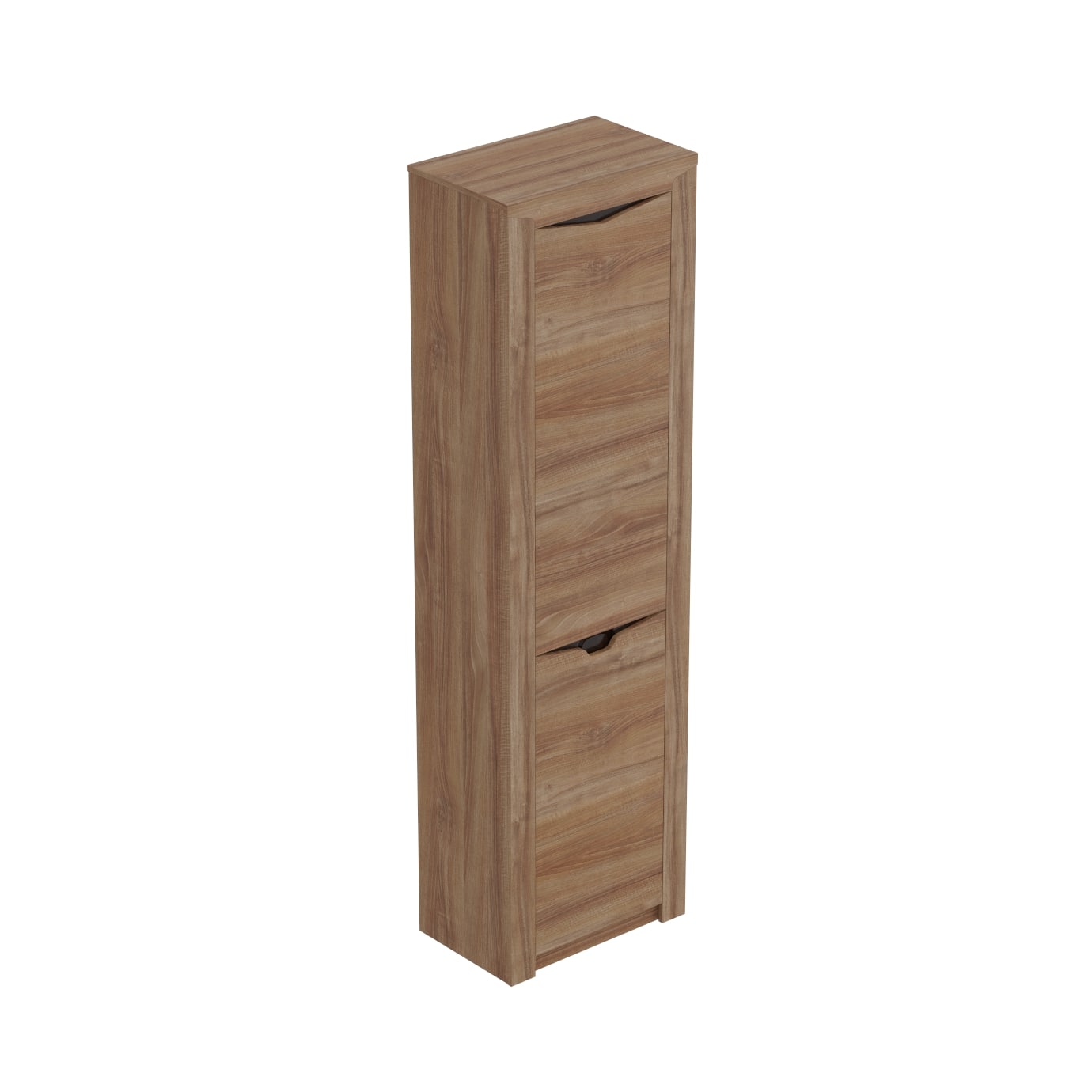 На фасаде имеется декоративный вырез, выполняющий функцию ручки.