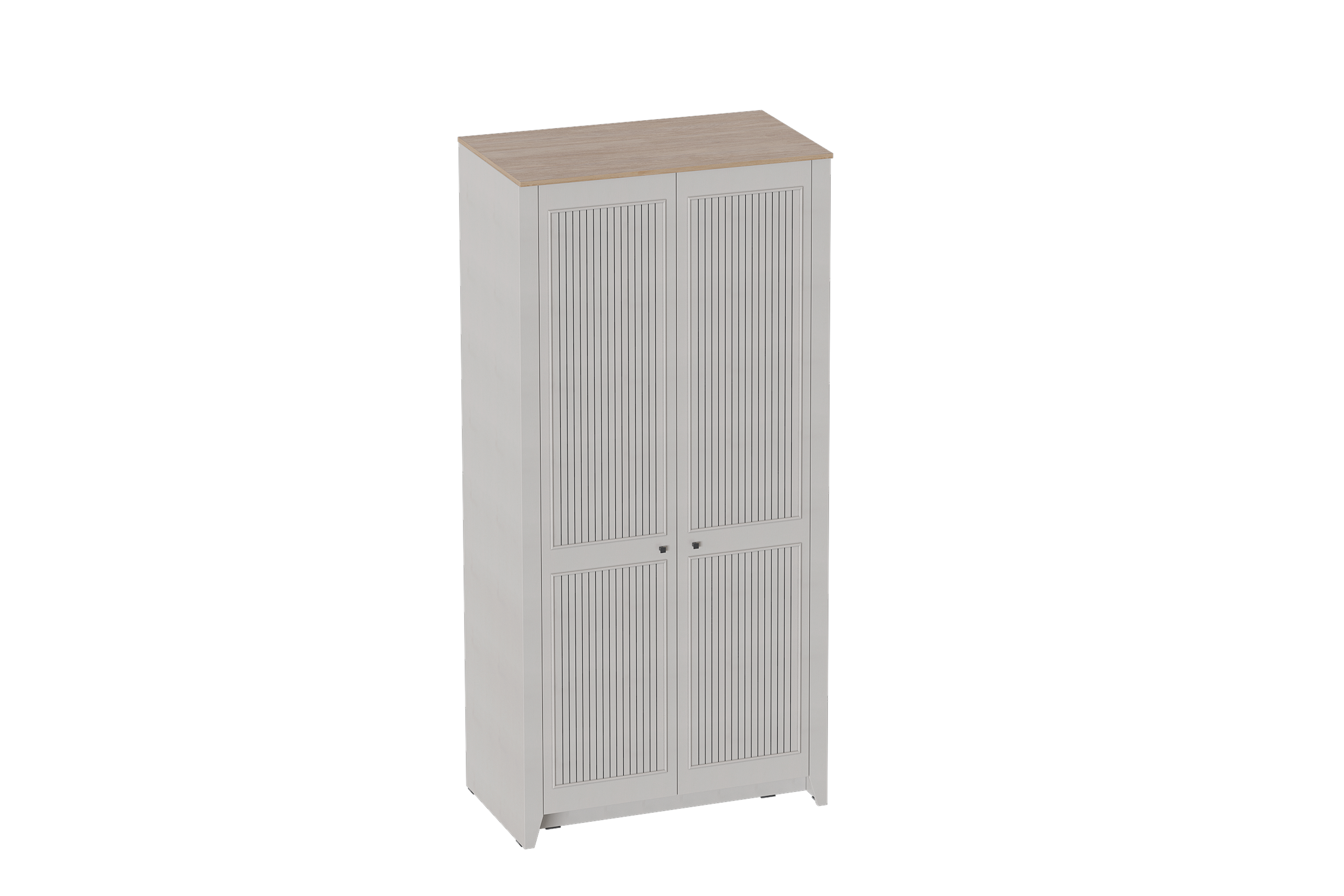 Шкаф 2 дверный Валенсия с зеркалом выполнен из (ЛДСП) в комбинации Дуб натуральный светлый / Персидский жемчуг.