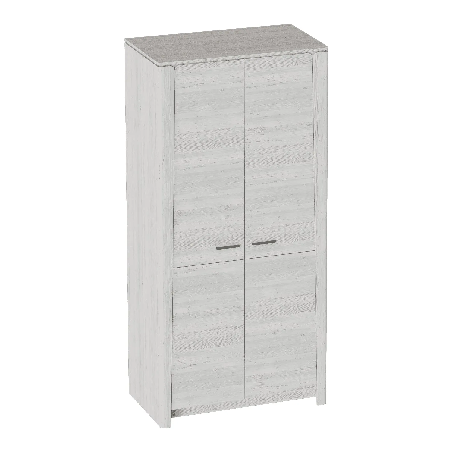 Внутреннее пространство шкафа разделено полкой на платяное с продольной стальной штангой и верхнее отделение для хранения белья. Фасады выполнены из МДФ, преимуществами данного материала являются влагостойкость, экологичность, гипоаллергенность, надёжность и долгий срок эксплуатации.