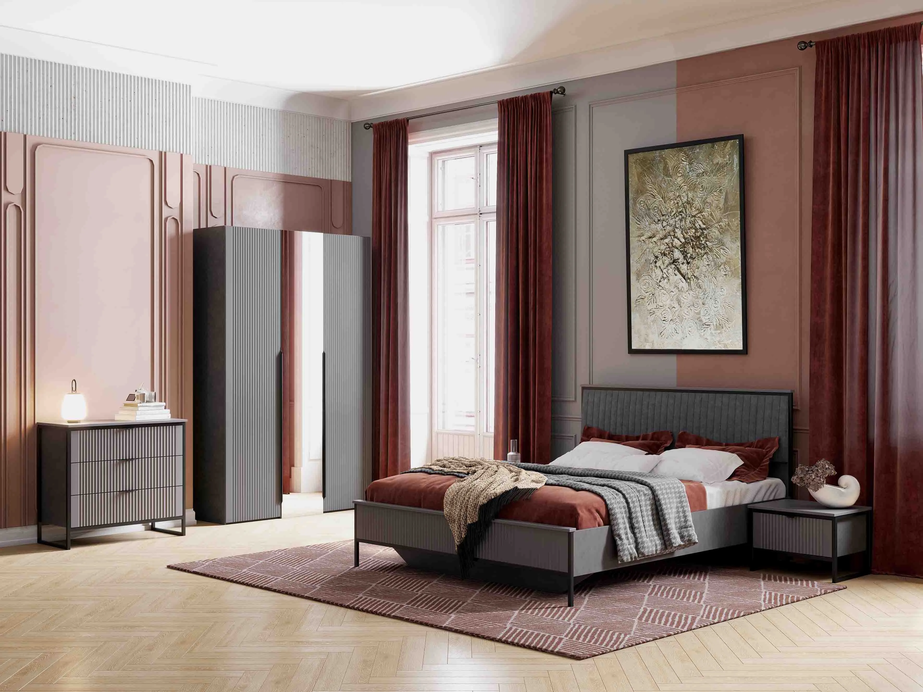 Гарнитур подходит как для просторных, так и для небольших спален, помогая эффективно использовать пространство и создавать уютное место для отдыха и сна.