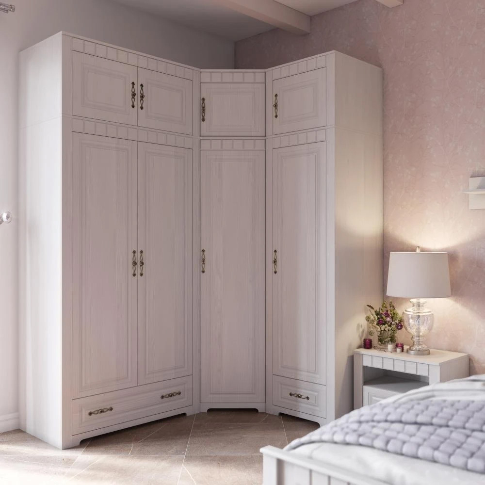 В серию "Прованс" входят: шкаф угловой, шкаф однодверный платяной, шкаф двухдверный, комод, антресоль двухдверная, антресоль угловая, антресоль однодверная, зеркало, стол туалетный, кровать, тумба прикроватная.