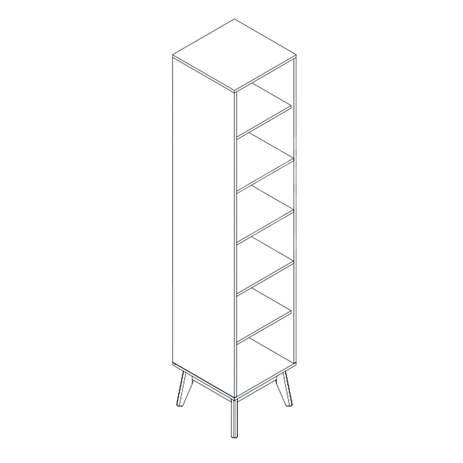 Стеллаж состоит из нескольких полок, которые могут быть использованы для хранения книг, документов, фотографий и других предметов. Оснащен вкладными боками соединенные полками, разделен на три отделения: верхнее и нижнее закрыто дверями, а в центре расположена открытая полка.