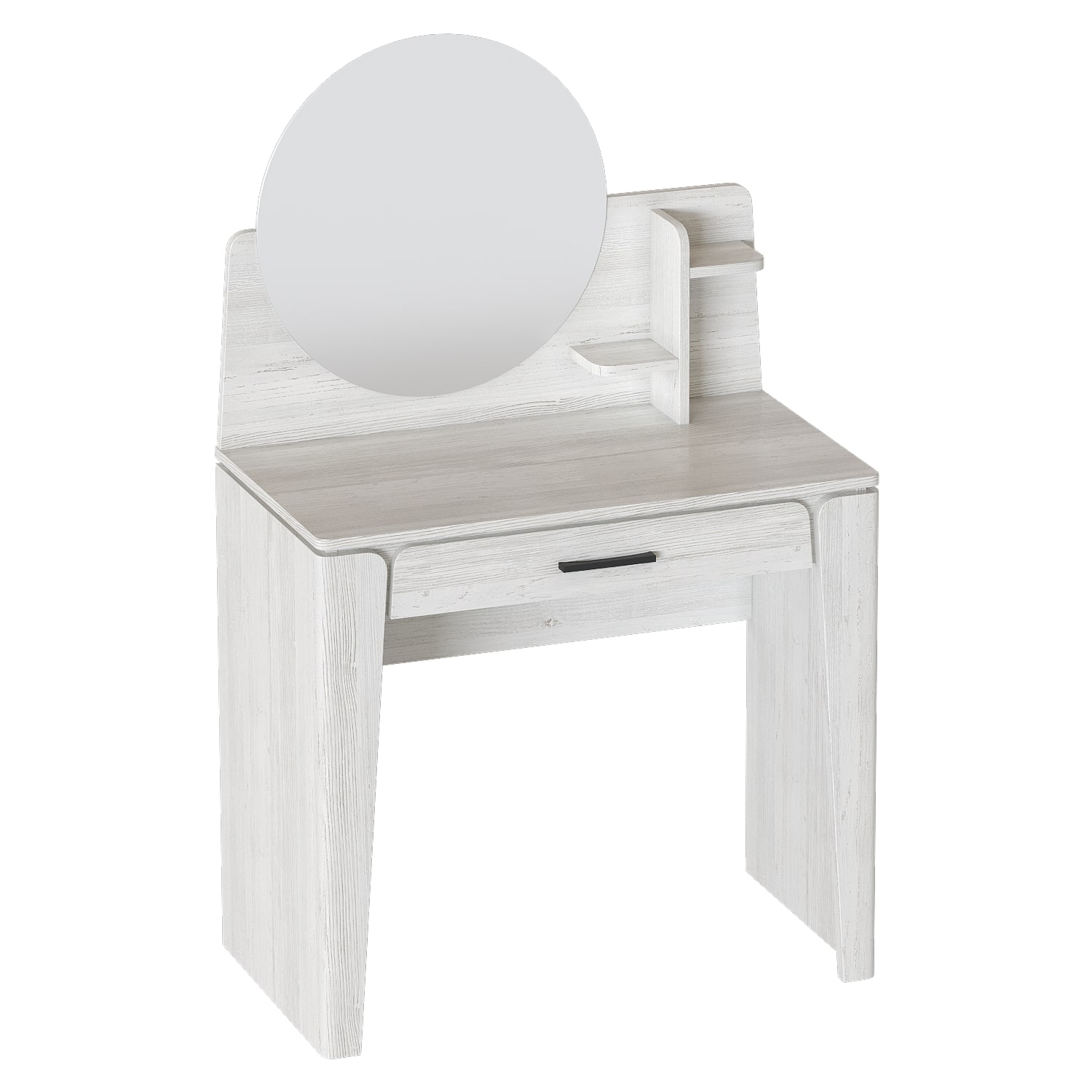 Туалетный столик с надстройкой "Мальта" оснащен круглым зеркалом и полками, выполнен в натуральных оттенках, он подойдет как для классической, так и для современной спальни.