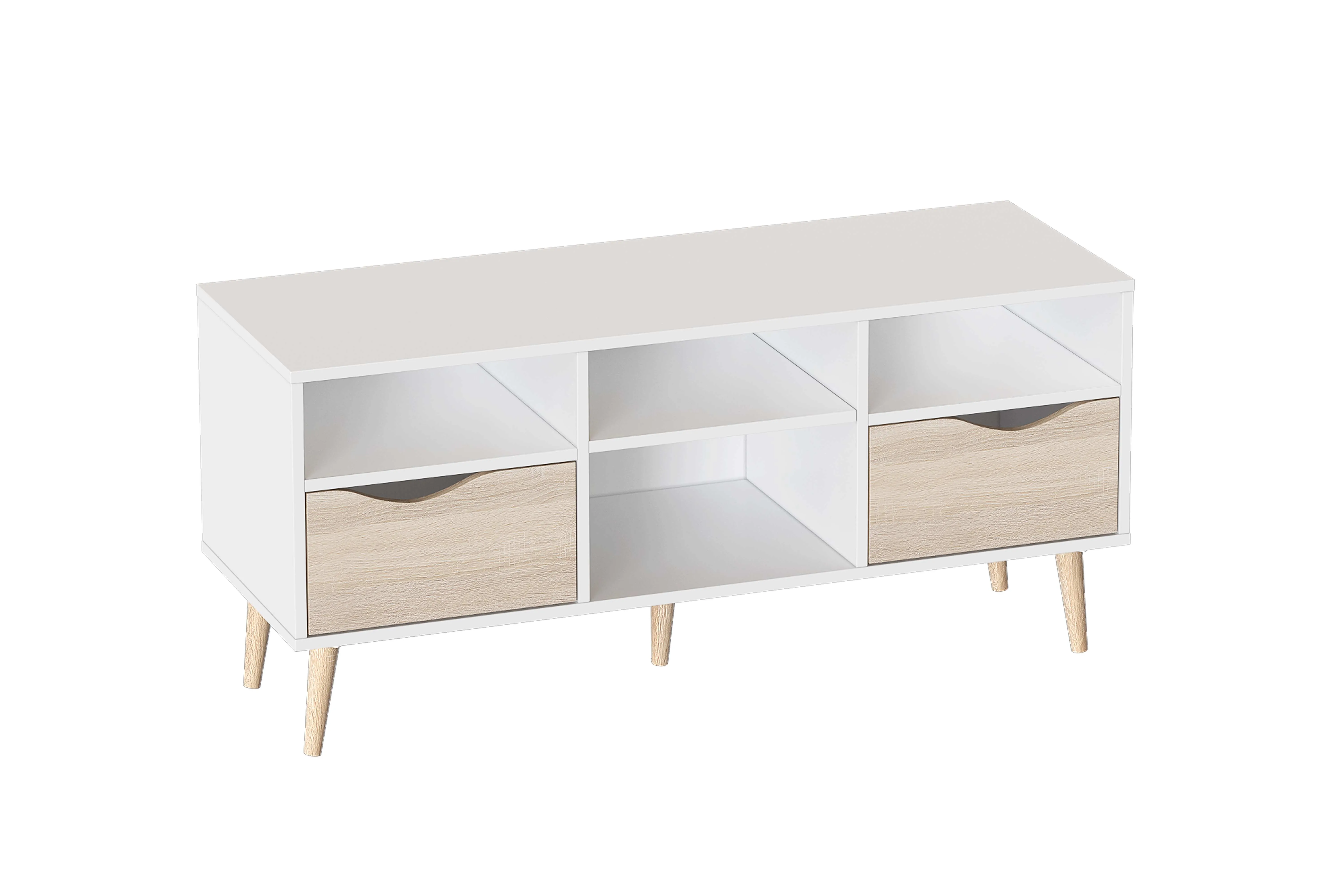 Серия «Соната» отличается простотой и натуральностью, выполнена в естественных тонах. В дизайне отчетливо улавливаются отсылки к скандинавской эстетике: чистые линии корпуса, использование белого цвета в отделке фасадов, расставленные в стороны высокие стильные опоры, выполненные из массива березы.