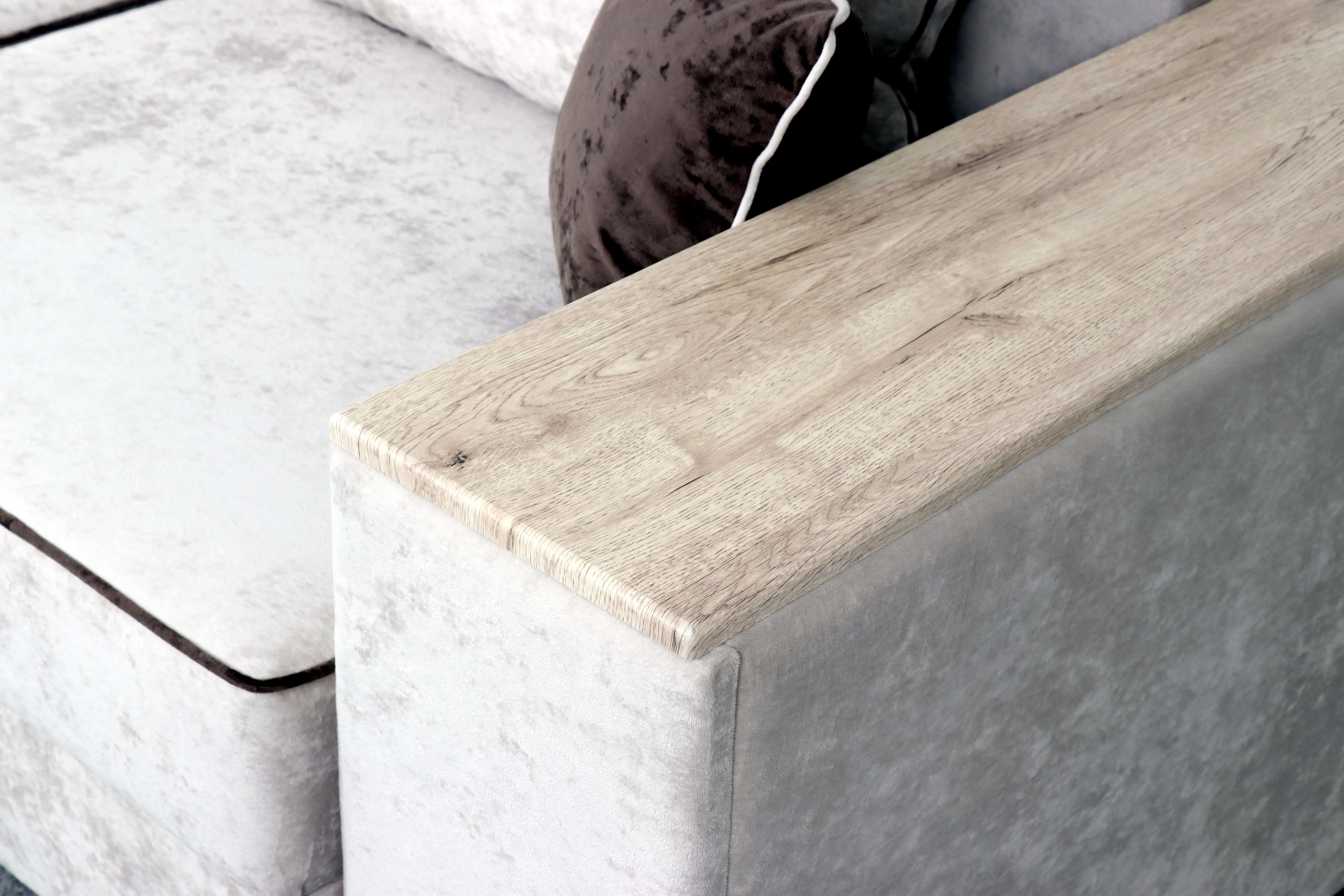 С одной стороны расположена боковина с нишей, с другой – ящики. Надежные петли с доводчиками добавляют комфортности использования мебели. Диван-трансформер может быть прямым, угловым и П-образным. Малые декоративные подушки входят в комплект дивана.