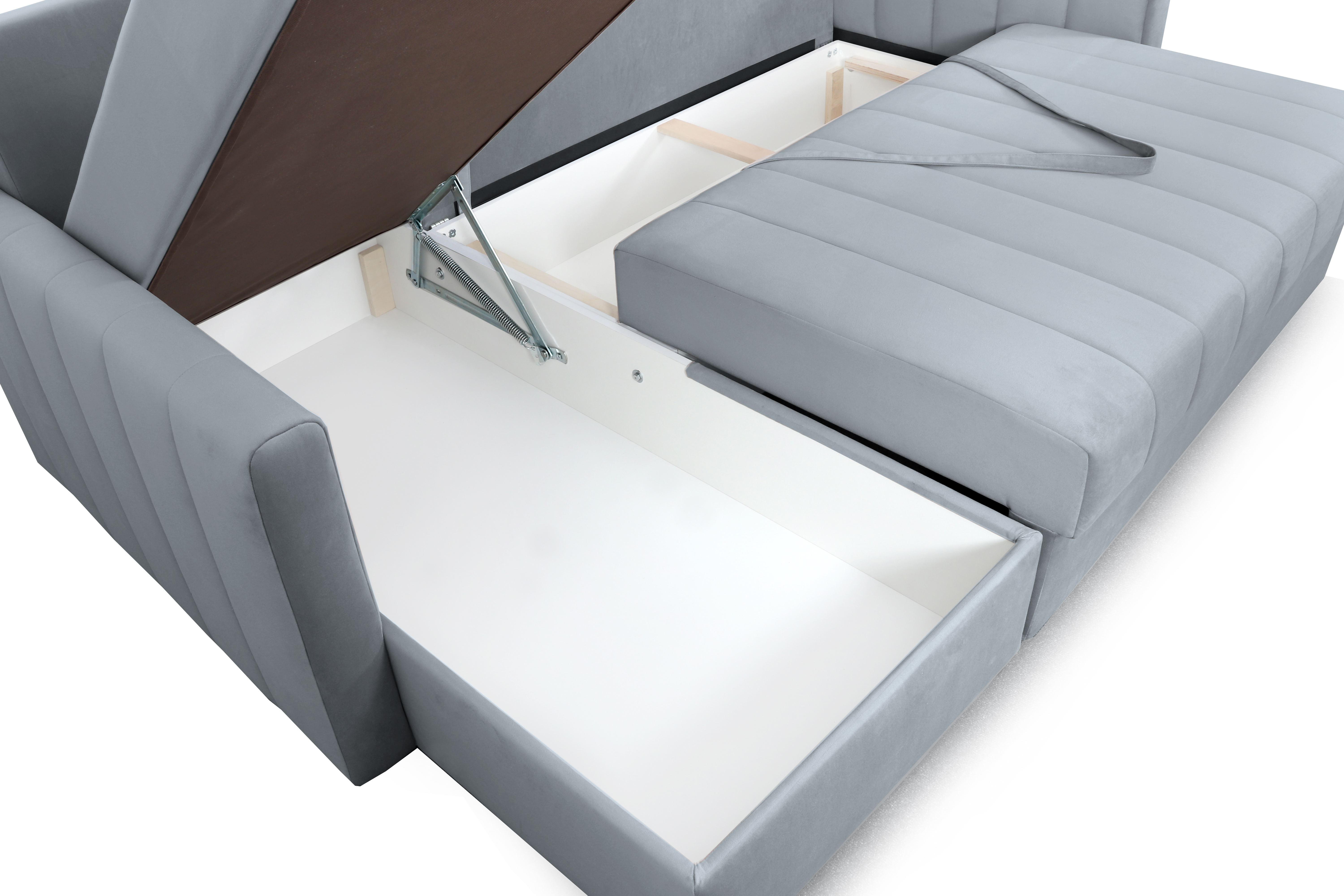 Диван удачно зонирует пространство и дополняет необходимым функционалом. В основании спального места блок независимых пружин для комфортного сна. Вместительный ящик для хранения постельных принадлежностей.