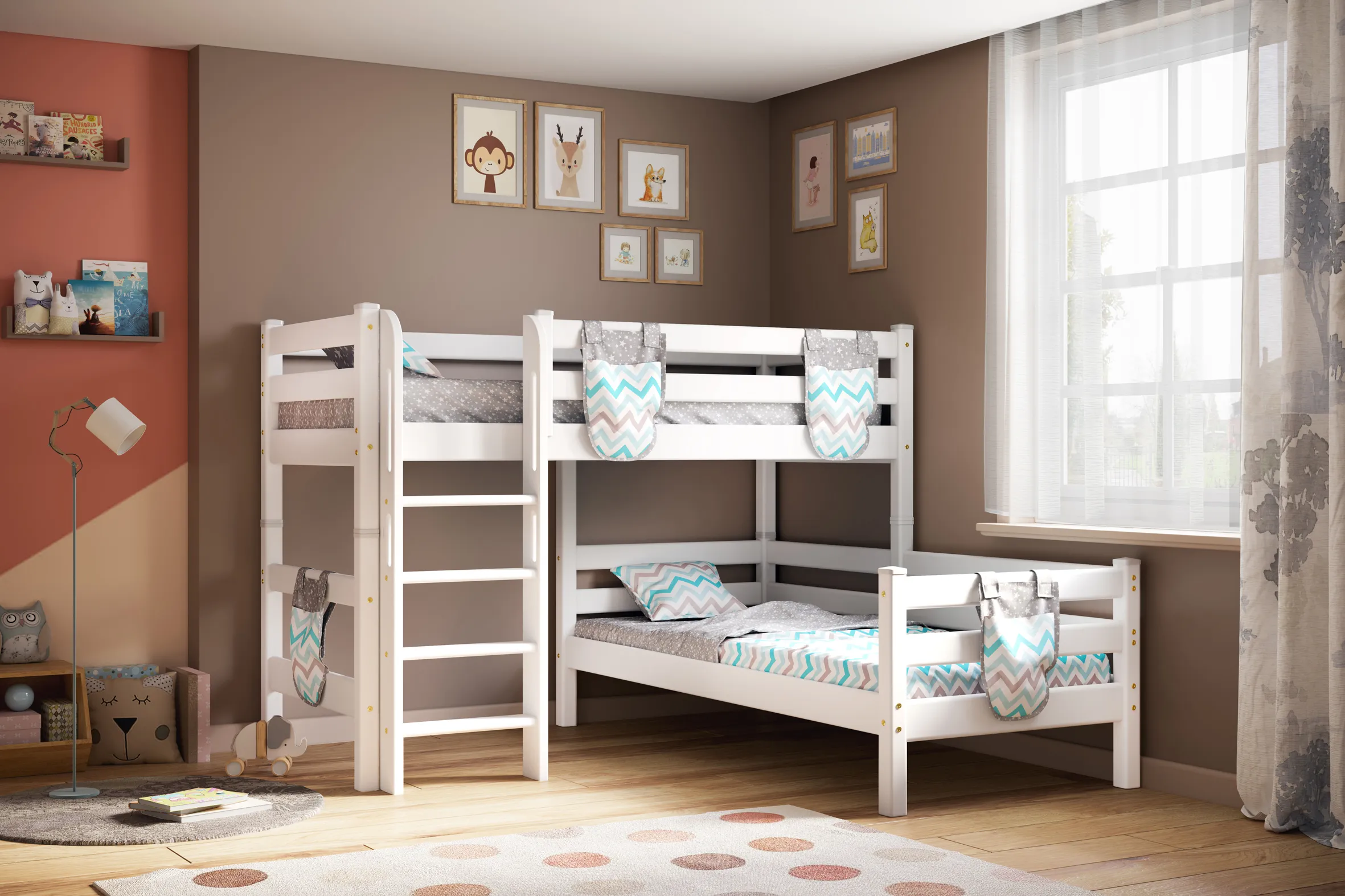 Вариант 7. Угловая кровать "Соня" с прямой лестницей — один из примеров идеального сочетания практичности, оригинальности и долговечности. Цветовое исполнение подходит сразу для нескольких стилей, а габариты — для комнат разной площади. Мебель для детской создается из безопасных материалов с отличной износостойкостью.