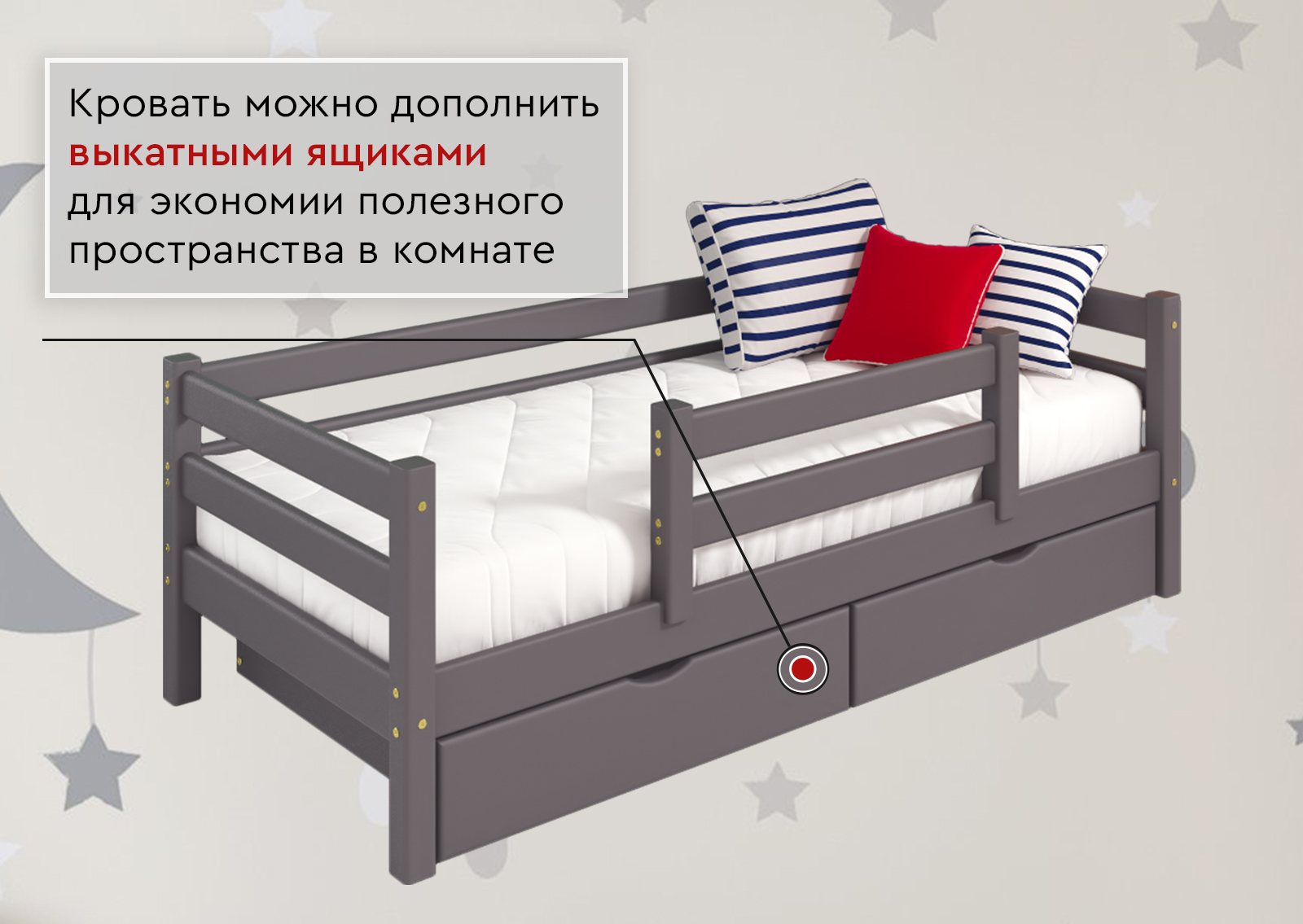 Цена на кровать указана без стоимости матраса, выкатных ящиков и текстиля