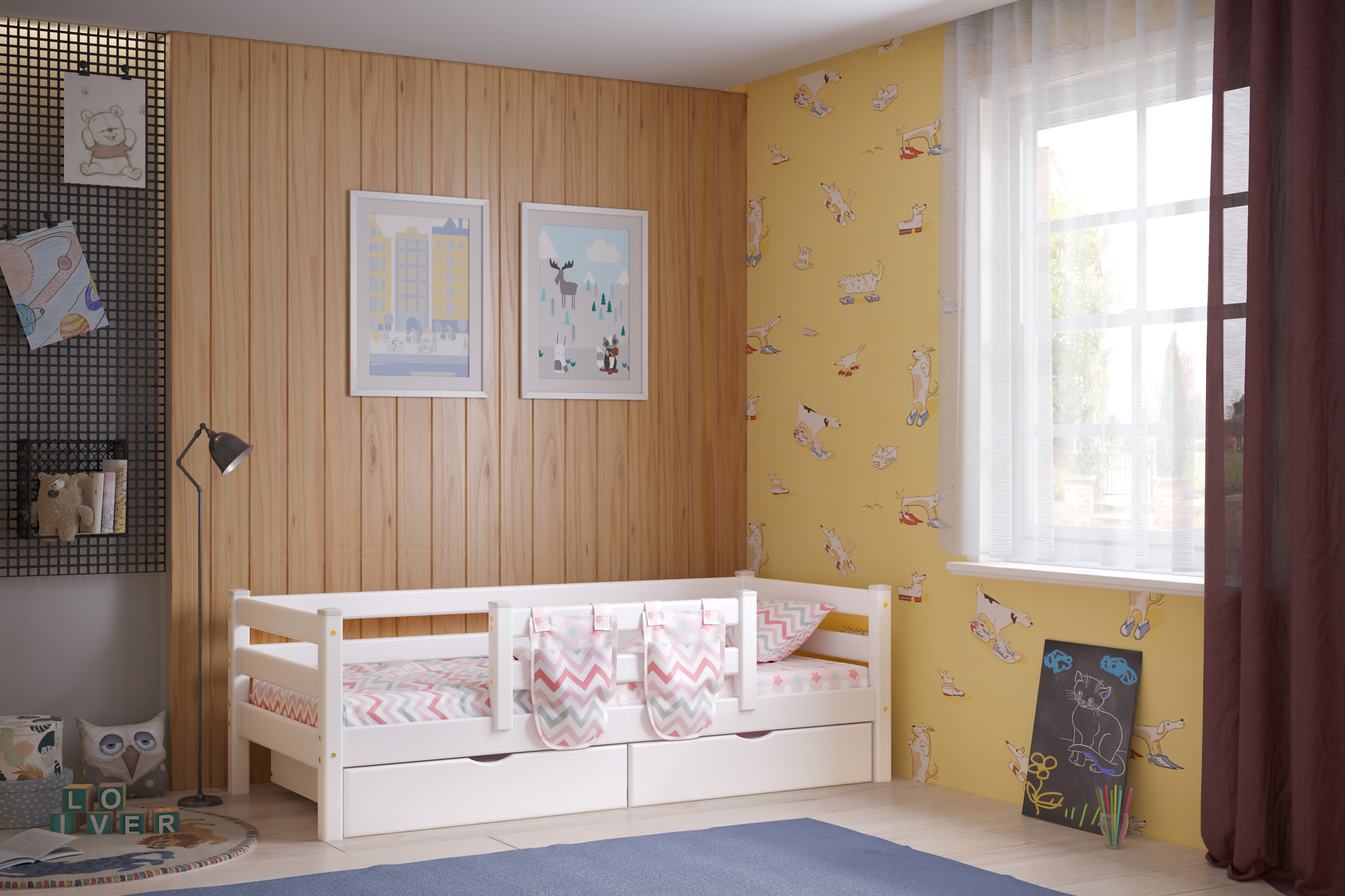 Вариант 4. Кровать "Соня" с защитой по центру — один из примеров идеального сочетания практичности, оригинальности и долговечности. Цветовое исполнение подходит сразу для нескольких стилей, а габариты — для комнат разной площади. Мебель для детской создается из безопасных материалов с отличной износостойкостью.
