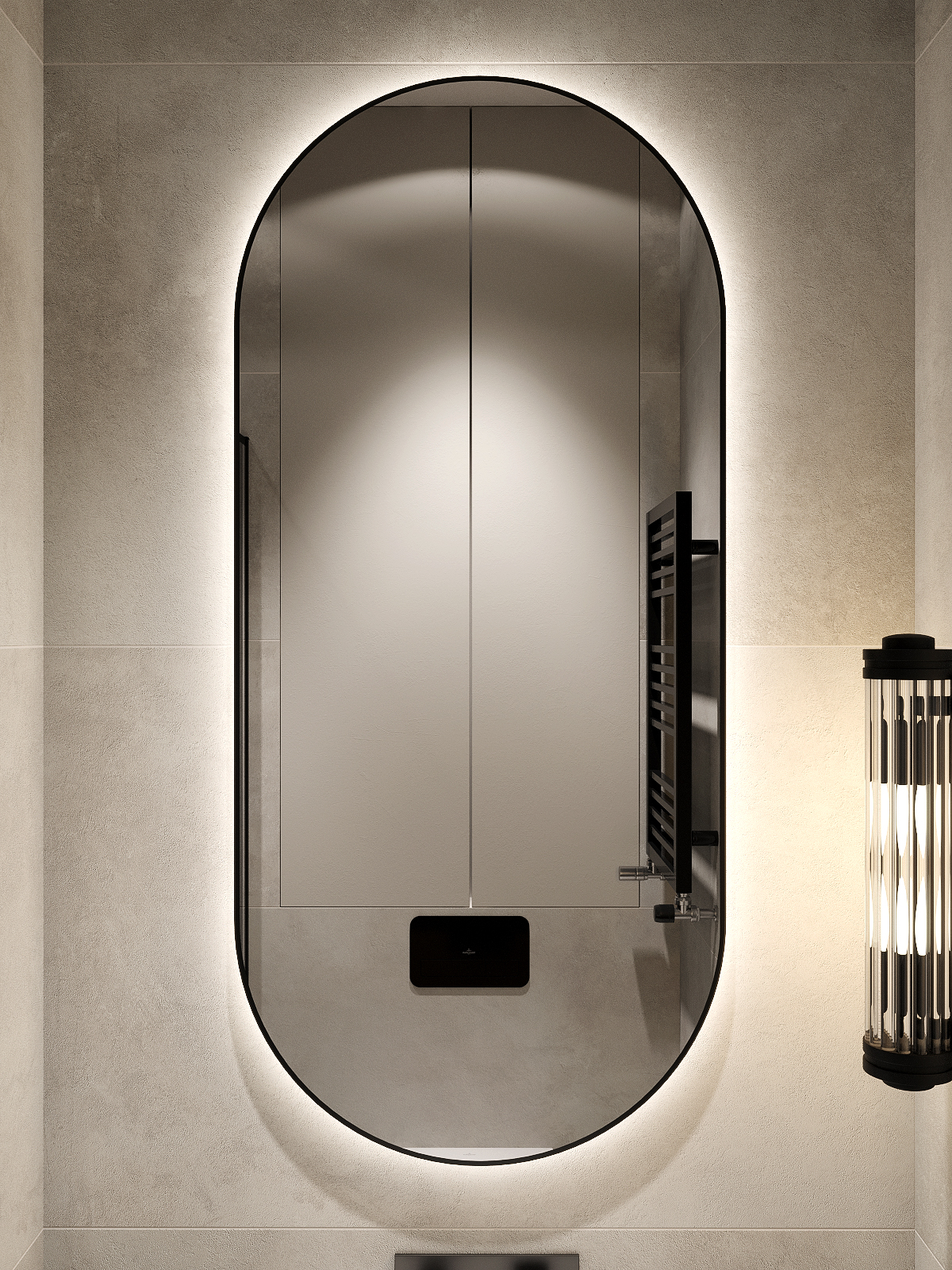 Зеркало навесное Z-16 110х50 см с черной рамкой и подсветкой